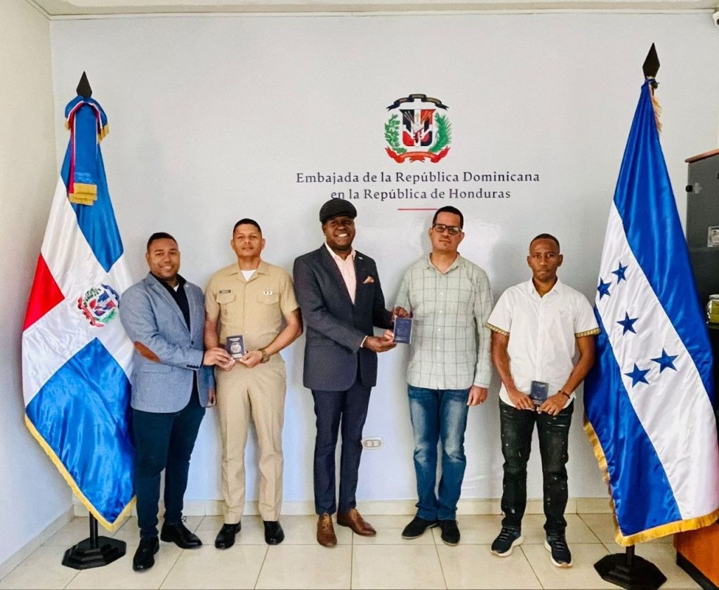 En el marco de continuar afianzando una política exterior de calidad hacia los usuarios, la embajada de la República Dominicana en Honduras aprovechó la ocasión de entregar formalmente el visado de acreditación de los oficiales superiores dominicanos de la Armada Dominicana, quienes se encuentran dando cursos de instrucción en Honduras, en el campo de las ciencias navales.