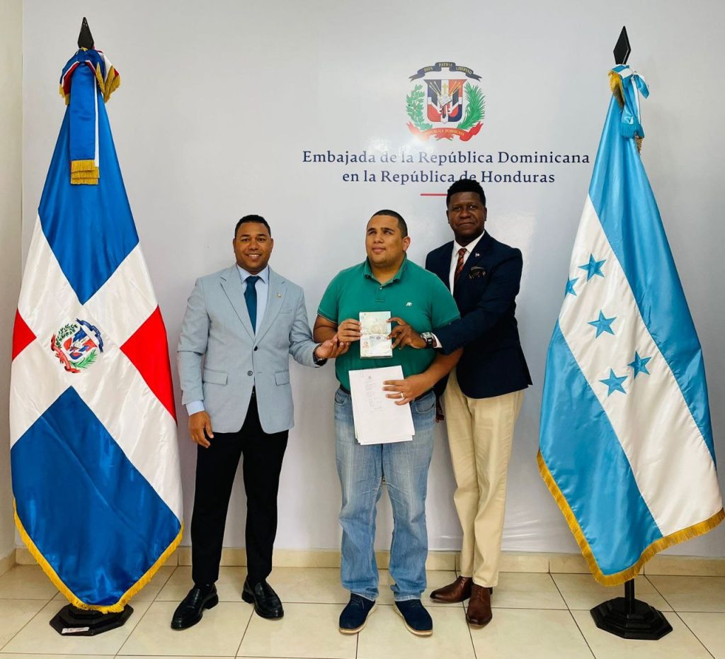 La entrega formal del documento consular, fue realizada por los funcionarios: Junior Pérez, Primer Secretario, encargado de la sección consular, y Bienvenido Hernández Paredes, Tercer Secretario, encargado de la comunidad dominicana en honduras.