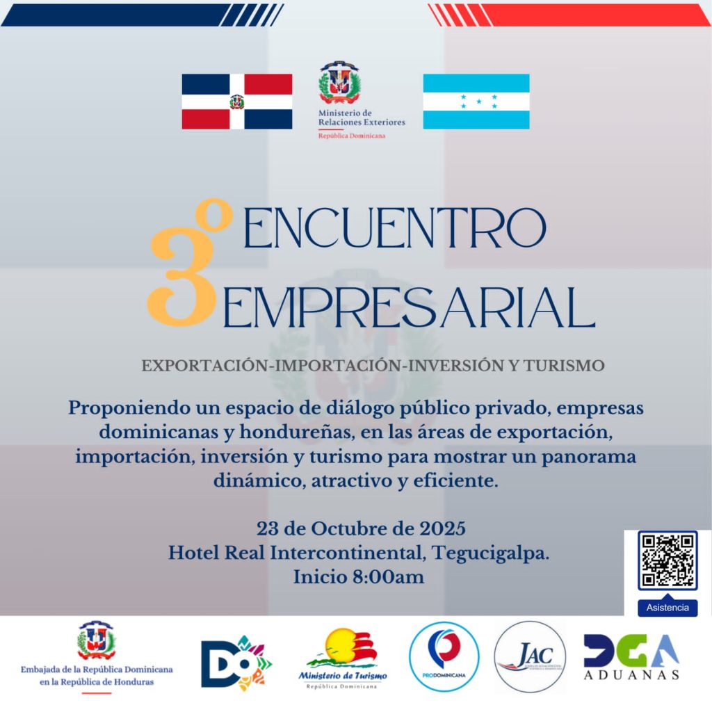 En el marco de continuar afianzando las sólidas relaciones tanto bilaterales como económicas, la Embajada de la República Dominicana en la República de Honduras, se complace en anunciar la celebración del “3er Encuentro Comercial de Negocios e Inversiones entre la República Dominicana y el país centroamericano.